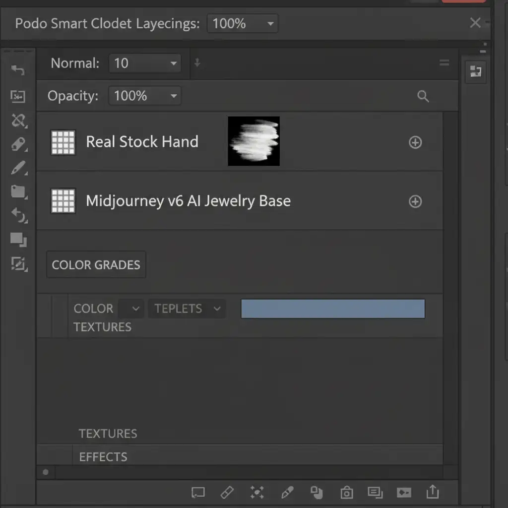 Sometimes, AI just can’t get the anatomy right. When Generative Fill fails, professional Compositing is required. This method uses Smart Objects and Layer Masking to blend a real stock photo with your AI jewelry.