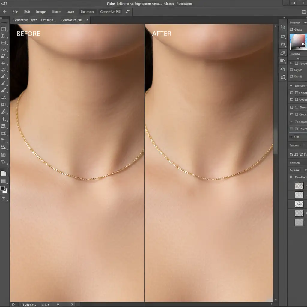 You’ve just used Adobe Generative Fill to extend a background on a stunning editorial portrait. The backdrop looks flawless, but there’s a massive problem: the AI completely obliterated the model’s delicate gold chain. If you are struggling with restoring AI erased jewelry details, you aren’t alone. In Photoshop v25.0 and later, the Firefly Image 3 engine frequently struggles with high-frequency micro-structures. Instead of preserving intricate diamond facets or specular highlights, the AI’s noise-reduction algorithms blur them into adjacent low-frequency textures like skin or fabric. Here is exactly how to fix it and get your shine back.