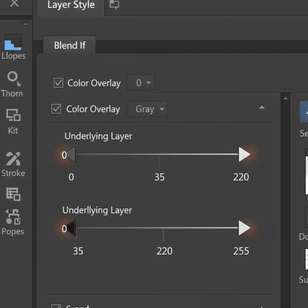 Double-click your gray layer to open the Layer Style dialog. Look at the ‘Blend If’ Underlying Layer slider at the bottom.