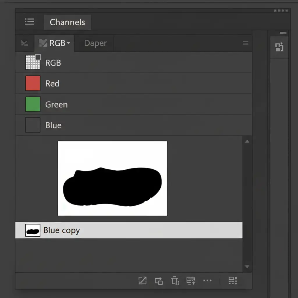 - Drag the Blue Channel to the “New Channel” icon to duplicate it.